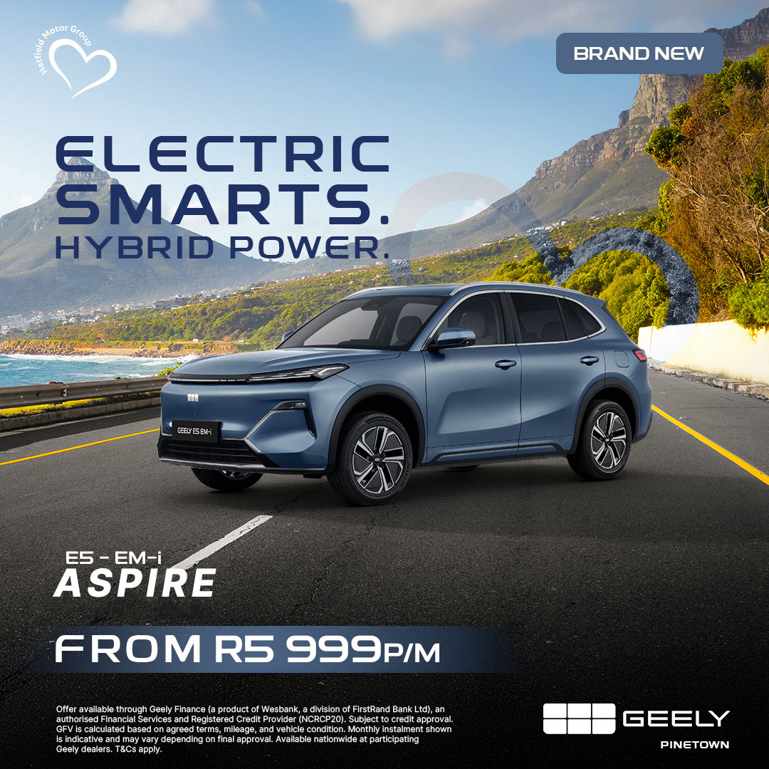 Offer available through Geely Finance (a product of Wesbank, a division of FirstRand Bank Ltd), an authorised Financial Services and Registered Credit Provider (NCRCP20). Subject to credit approval. GFV is calculated based on agreed terms, mileage, and vehicle condition. Monthly instalment shown is indicative and may vary depending on final approval. Available nationwide at participating Geely dealers. T&Cs apply.