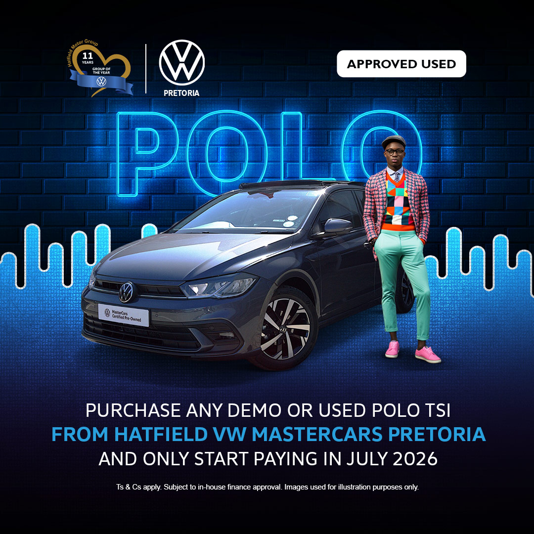 From Hatfield VW Mastercars Pretoria and only start paying in July 2026. |